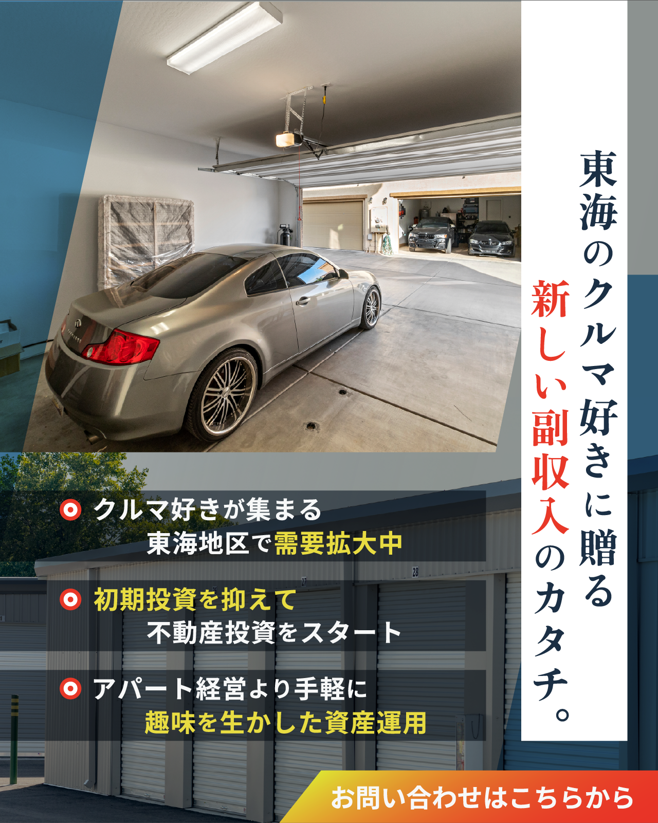 東海のクルマ好きに贈る、新しい副収入のカタチ 東海で需要拡大中のガレージ投資を始めませんか?